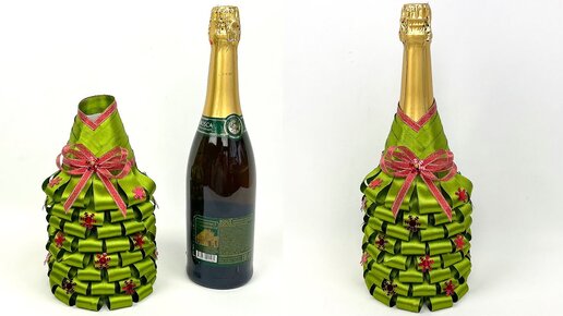Ленты + Шампанское Простая и Изящная Идея Подарка на Новый Год Елка из шампанского
