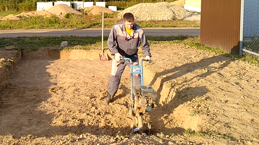 Копаю яму для будущего фундамента бани. Крушу железобетонные столбы.