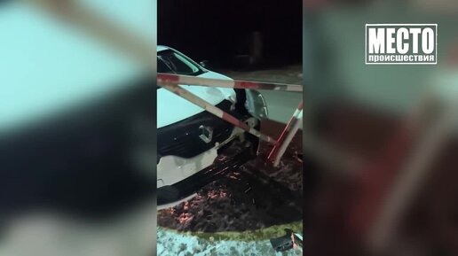Повисла на столбиках у жд переезда