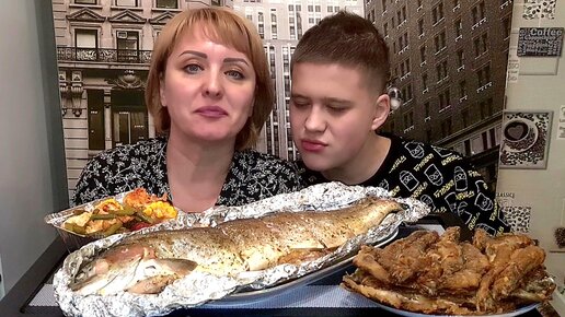 ФОРЕЛЬ в фольге, ПУТАССУ жареная, ОВОЩИ в духовке. Мукбанг. Еда.