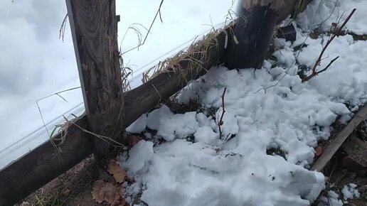Закаляю виноград из косточки, забрасываю снег в теплицу.