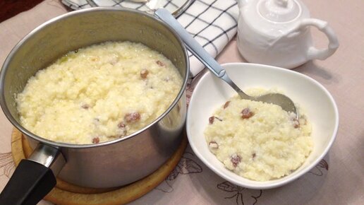 Вот такая получается десертная пшенная каша, если сварить её на молоке с изюмом и сырым яйцом