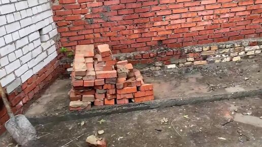 Разбираем кирпичную кладку в недостроенном гараже