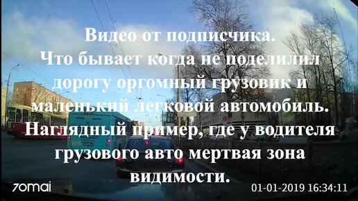 Что бывает когда не поделит дорогу грузовик и легковой автомобиль. Наглядный пример где у водителя грузовика мертвая зона видимости