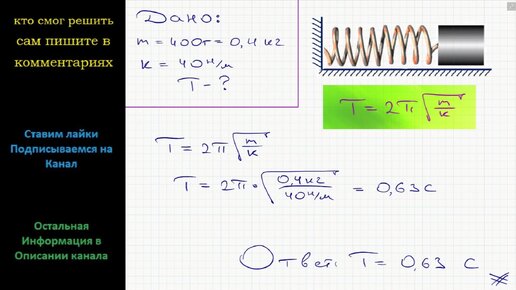 Физика Каков период колебания пружинного маятника массой 400 г, если жесткость пружины 40 Н/м?