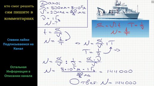 Физика В каюте пассажирского судна установлены часы с маятником. Сколько колебаний совершает маятник во время перехода длиной 800 км, если