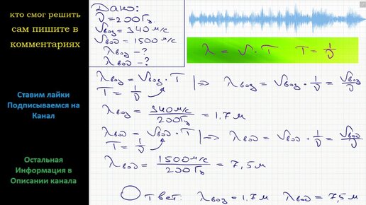 Физика Какова длина звуковой волны с частотой 200 Гц: а) в воздухе; б) в воде?