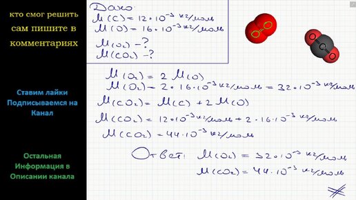 Физика Чему равны молярные массы кислорода и углекислого газа (CO2)?