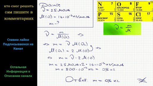 Физика Какова масса 25 моль кислорода?