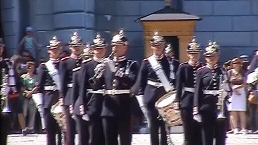 Выступление шведского военного духового оркестра у Королевского дворца в Стокгольме