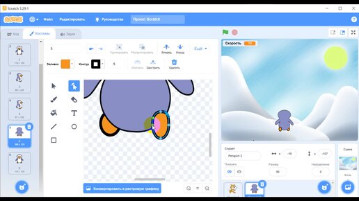 10 Создаем движение спрайта по сторонам и к себе, от себя