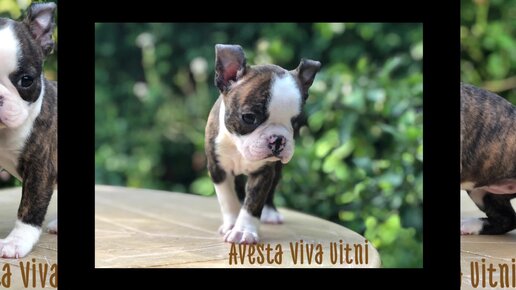 Щенок бостон терьера Авеста Вива Уитни, девочка родилась в 2021 году.