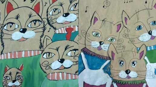 Как нарисовать оригинально котов на крафт-бумаге