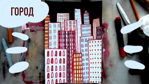 Как нарисовать город фломатерами, пошаговый урок для детей и взрослых