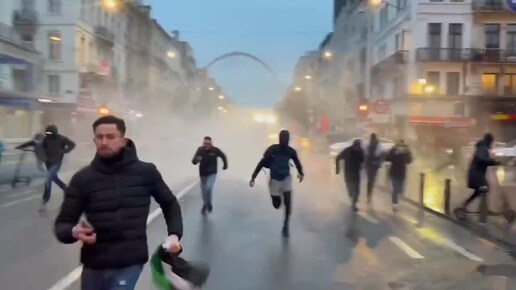 Кадры из Бельгии, где сегодня футбольные фанаты разгромили центр.