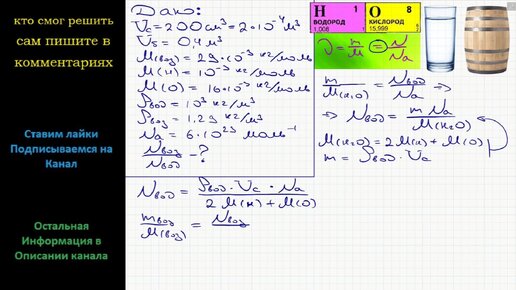 Физика Где больше молекул в стакане воды или в воздухе внутри «пустой» бочки? Объем стакана 200 см3 объем бочки 0,4 м3 воздух находится при