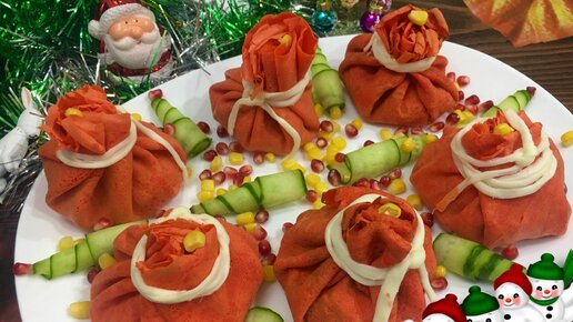 Фаршированные Блины "Мешочки Деда Мороза". Яркое дополнение новогоднего стола. Новогодние идеи 2023