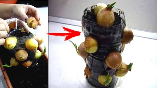 Места на окне занимает мало и красота!Зеленый лук в пластиковой бутылке на подоконнике! Сажаем Луковое дерево видео №1, продолжение следует
