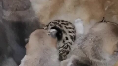 В Иркутске собака выкармливает леопарденка, но как он туда попал, сотрудники зоогаллереи говорить пока отказываются - обещают рассказать эту историю не раньше весны