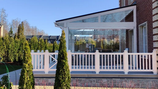 Смотрим беседку с безрамным остеклением и стеклянной кровлей