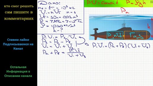 Физика Чтобы подводная лодка всплыла, нужно с помощью сжатого воздуха вытеснить из балластных цистерн 1 т морской воды. С какой наибольшей