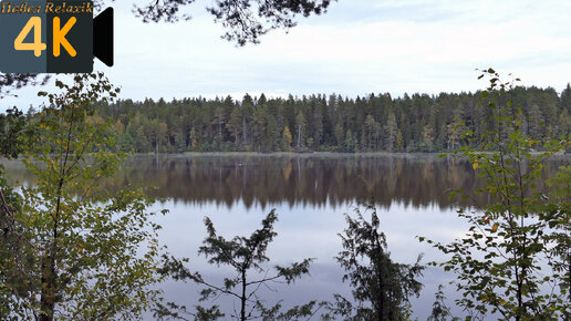Живописное озеро в Карелии Утренняя дымка над гладью Пение лесных птиц