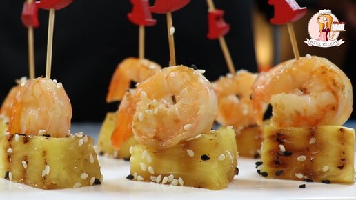 Праздничные канапе всего из 2-х ингредиентов! Канапе с креветками и ананасом