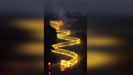 Золотой дракон! Состоящий из 88 бамбуковых плотов, курсирующих по реке Юйлун, Гуйлинь, Китай