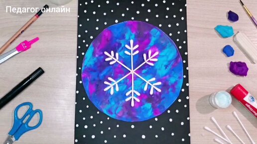 Снежинка из ватных палочек. Яркая и красивая зимняя поделка. Пластилинография