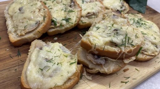 ГОРЯЧИЕ БУТЕРБРОДЫ С ГРИБАМИ И СЫРОМ В ДУХОВКЕ