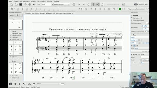 Решение задачи на проходящие и вспомогательные квартсекстаккорды (№6 из упр 178)