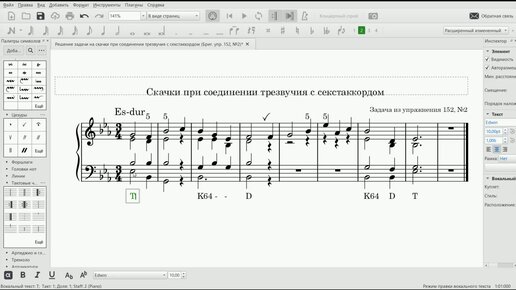 Далее: Решение задачи на скачки при соединении трезвучия с секстаккордом (№1 из упр. 152)
