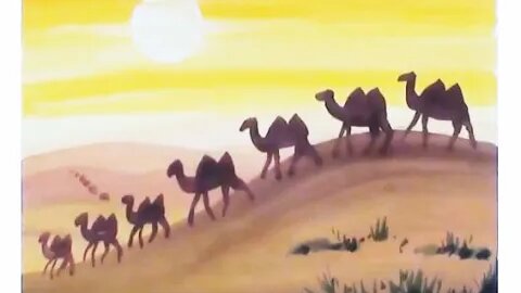 Летний пейзаж гуашью. Караван верблюдов. Легкий поэтапный пейзаж для детей или начинающих.