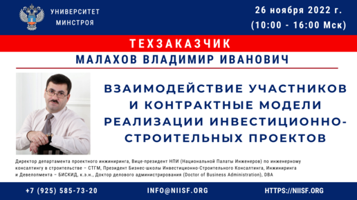 Малахов В.И. Семинар. Взаимодействие участников и контрактные модели реализации инвестиционно-строительных проектов. Часть 1.