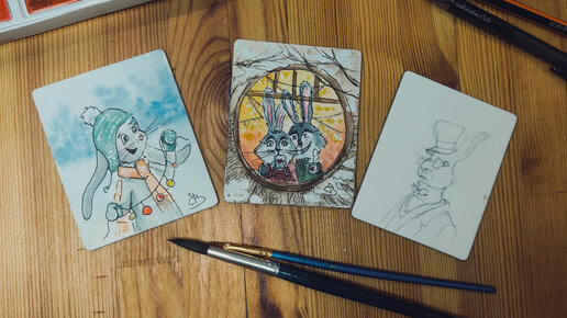 Рисуем зайчиков акварелью к новому году!