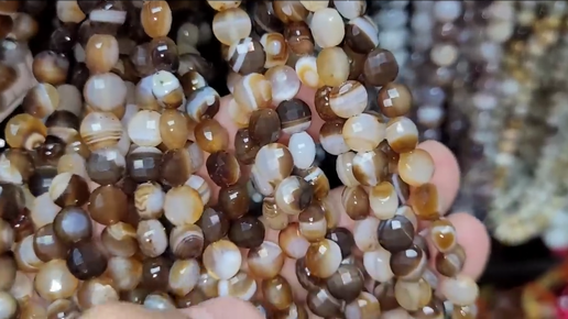БРАЗИЛЬСКИЙ АГАТ, ОБСИДИАН. БУСЫ ИЗ НАТУРАЛЬНЫХ КАМНЕЙ
