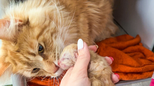 Мейн-кун Барби родила котят! Первые роды у кошки