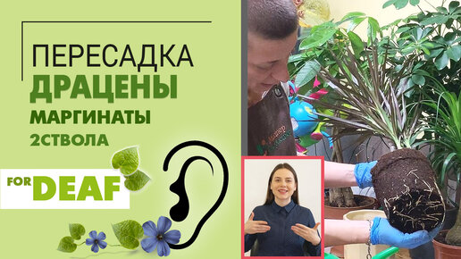Пересадка Драцены Маргината с 2-мя стволами { СУРДОПЕРЕВОД } В чем нюанс