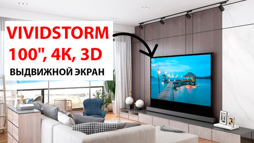100" ДЮЙМОВЫЙ 4К, 3D ВЫДВИЖНОЙ НАПОЛЬНЫЙ ЭКРАН VIVIDSTORM - ОБЗОР И ТЕСТЫ