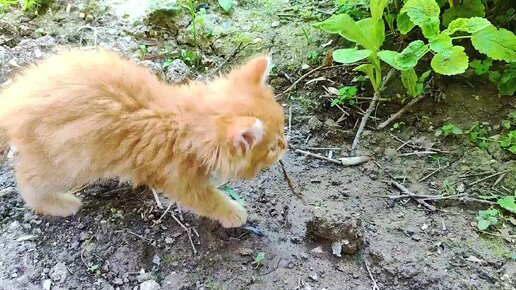 Рыжик нашёл дождевого червяка