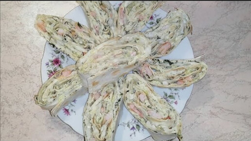 Рулет из лаваша с креветками и пекинской капустой