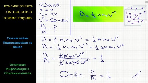 Физика Как изменится давление идеального газа при увеличении концентрации его молекул в 3 раза, если средняя квадратичная скорость молекул