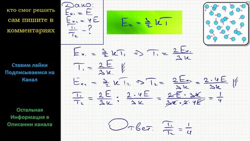 Физика При нагревании идеального газа средняя кинетическая энергия теплового движения молекул увеличилась в 4 раза. Как изменилась при этом