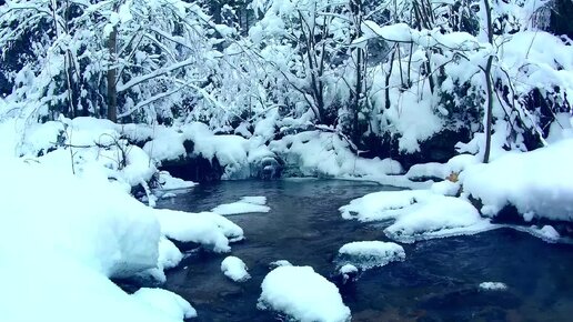 Заснеженный лес. Расслабляющий фоновый шум реки. 1 час. Красивый зимний пейзаж.