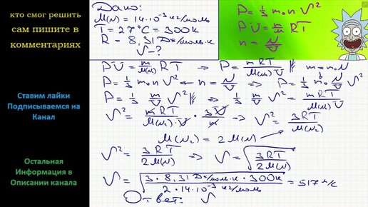 Физика Какова средняя квадратичная скорость молекул азота при температуре 27 С?
