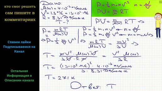 Физика При какой температуре средняя квадратичная скорость атомов гелия равна 1,3 км/с?