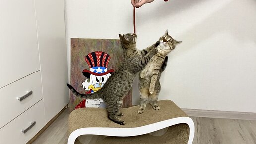 Котенок Изольда и Мася дерутся за лакомство..