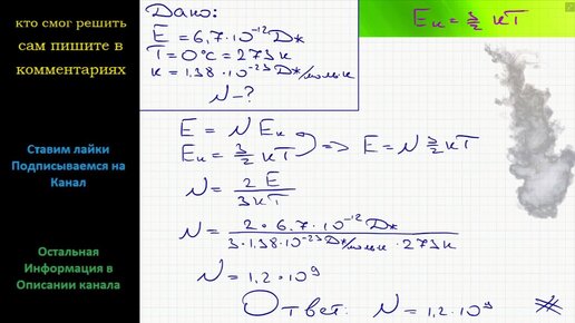 Физика Энергия хаотического поступательного движения всех молекул некоторого газа при температуре 0 С составляет 6,7٠10-12 Дж Найдите число