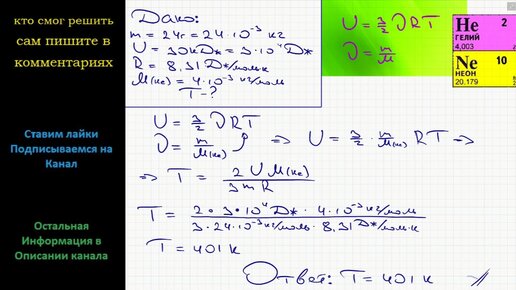 Физика При какой температуре внутренняя энергия 24 г гелия равна 30 кДж?