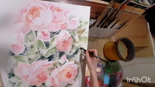 Акварельная техника акриловыми красками на холсте, с соблюдением правил работы акварелью.